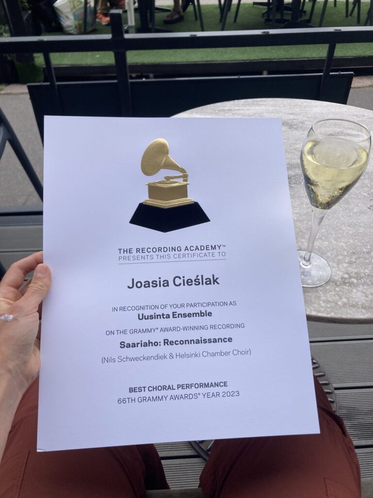 In my early twenties, I performed Shostakovich’s chamber music at the Concertgebouw in Amsterdam, and in my early thirties, I received a GRAMMY Award Certificate as an Associate Performer on the Grammy-winning CD “Saariaho: Reconnaissance”.